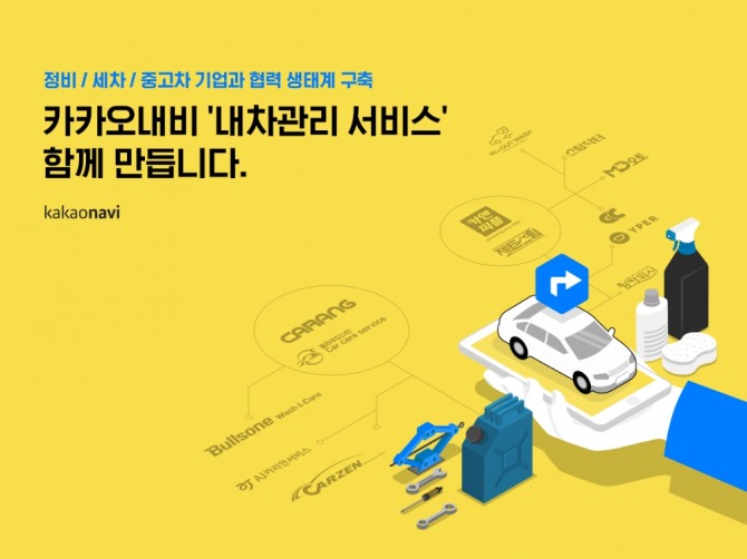 이미지 확대보기카카오모빌리티는 국내 세차․정비 및 중고차 분야 전문기업들과 전방위 협력 체계를 구축하고, 카카오내비에 ‘내 차 관리’ 서비스를 선보일 예정이라고 9일 밝혔다.