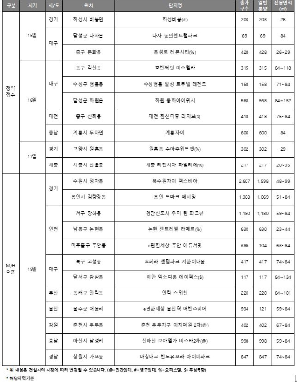 전국 10곳 청약 접수…당첨자 발표 10곳‧계약 11곳 진행