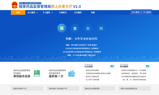 중국 약품관리감독국 온라인 정부 서비스 플랫폼