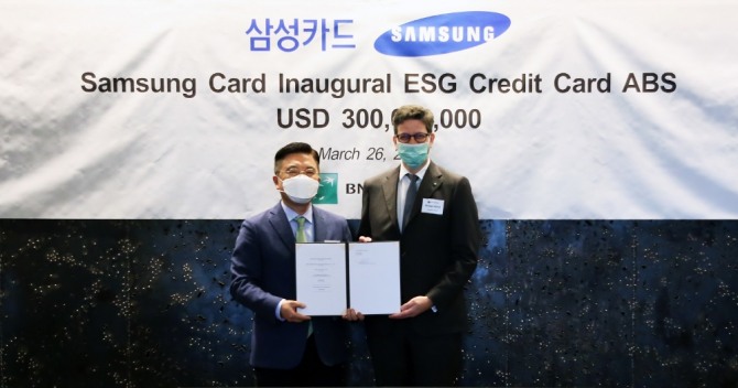 이번에 발행한 ABS는 평균 만기 5년으로 총 3억 달러 규모며, 삼성카드는 이를 통해 조달한 자금을 ESG 경영 활동을 위해 활용할 계획이다.