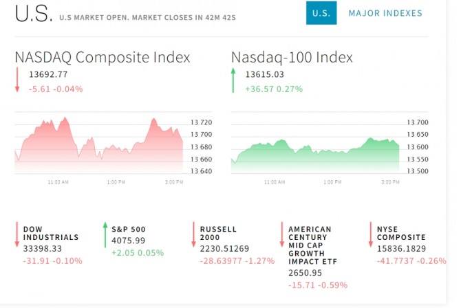 뉴욕증권거래소(NYSE)에서 다우존스 30 산업평균지수와 스태더드앤드푸어스(S&P) 500 지수 그리고 기술주 중심의 나스닥지수 등은 최고기록 언저리에서 소강상태를 보이고 있다. FOMC 의사록 발표에 앞서 찰스 에번스 시카고 연방준비은행(연은) 총재는 이날 연설에서 연준의 물가 및 고용 목표를 달성하기 위해서는 당분간 완화적 통화정책이 필요하다고 말했다. 에번스 총재는 "향후 몇 개월 동안 물가 상승세가 이어질 것"이라면서도 "물가 압력이 연준의 2% 목표를 지속해서 달성하려면 시간이 좀 걸릴 수 있다"고 덧붙였다.