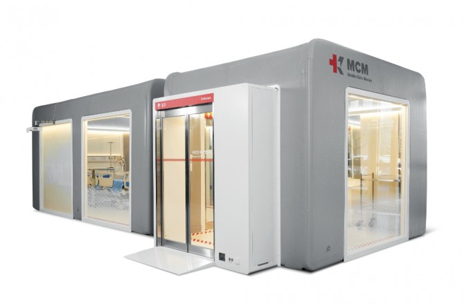 이동형 음압병동은 고급 의료 설비를 갖춘 음압 격리 시설로 신속하게 변형하거나 개조해 사용할 수 있도록 디자인됐다. 음압 프레임·에어 텐트·기능 패널 등의 각 모듈을 조합해 단시간 내에 음압 병동이나 선별진료소 등을 구축할 수 있다. 또 소규모의 장비와 인력으로도 관리·이송·설치가 가능해 기존의 조립식 병동 대비 경제적·시간적 효율을 높인 것이 가장 큰 특징이다.
