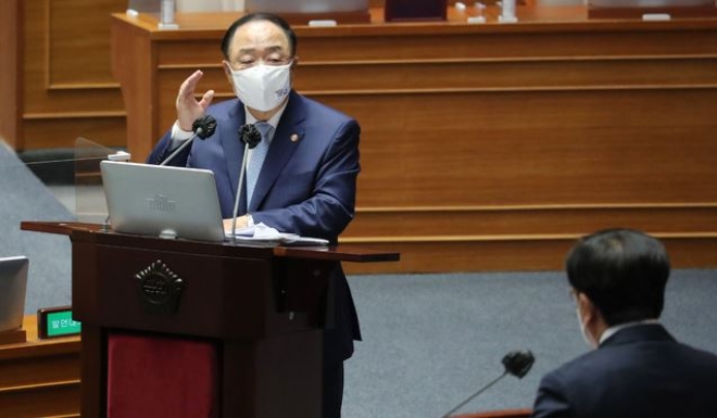 홍남기 국무총리 직무대행 겸 경제부총리는 20일 국회 대정부질문에서 “지난해 부동산가격이 많이 뛰고 공시지가 현실화율까지 고려해 세 부담이 늘어났다”고 인정하면서 “세 부담을 줄여주고 경감 부분도 최대한 고려할 것”이라며 여당의 움직임에 호응했다.