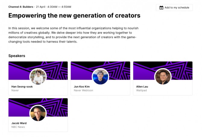 네이버, 네이버웹툰, 왓패드의 대표 세 명이 한 자리에 모여 새로운 디지털 콘텐츠 생태계에 대해 논의해 관심을 모은다. 네이버의 왓패드 인수로 글로벌 웹툰 시장의 1위인 네이버웹툰과 웹소설 1위인 왓패드의 만남이라는 점에서 시선을 집중시킨다.