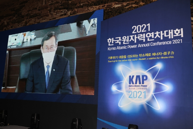 한국수력원자력(한수원)이 회장사를 맡고 있는 한국원자력산업협회가 이틀간 경주화백컨벤션센터(HICO)에서 개최한 '2021년 제36회 한국원자력연차대회'가 화제의 행사로 국내외 60여 개 기관의 원자력 전문가 600여 명이 대거 참석했다.