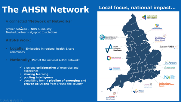 Eastern AHSN은 영국 전역에 위치한 AHSN 네트워크 중 하나로 캠브리지(Cambridge), 피터버러(Peterborough), 노포크(Norfolk), 서포크(Suffolk)를 포함한 영국 동부 지역에서 NHS와 산업계 간 중간 다리 역할을 하고 있다.