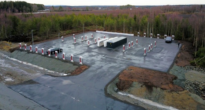 노르웨이 리게에 있는 유럽 최대 테슬라 슈퍼차저. 사진=TOCN