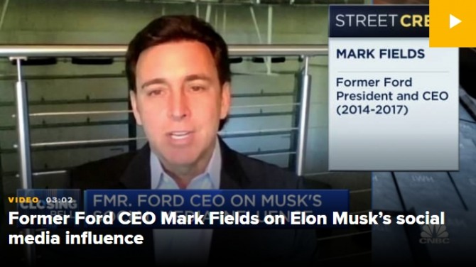 이미지 확대보기지난 2017년까지 포드자동차에서 최고경영자(CEO)로 일했던 마크 필즈는 2일(이하 현지시간) CNBC방송에 출연한 자리에서 “일론 머스크 테슬라 CEO가 전기차를 자동차 시장의 주류로 끌어올린 공이 있지만 이젠 제대로 치열한 경쟁 구도가 펼쳐지면서 고전하고 있는 상황”이라고 주장했다.