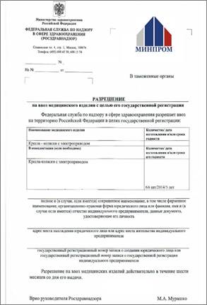 | Roszdravnadzor가 발급한 수입 허가서 | Roszdravnadzor에 등록된 인증서 |