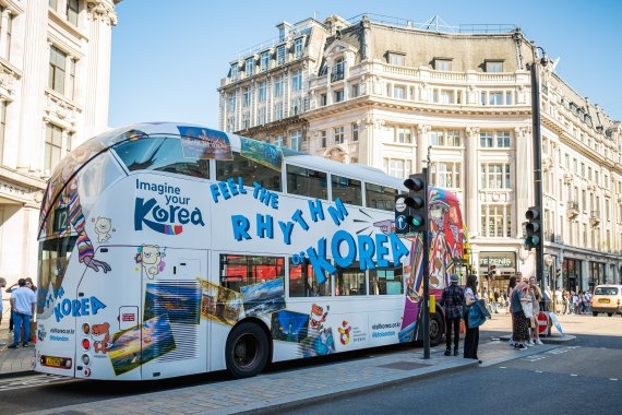 관광공사 런던지사는 런던의 명물인 2층버스에 한국관광 해외홍보 영상물인 '한국의 리듬을 느껴봐(Feel the Rhythm of Korea)'의 일러스트 래핑 광고(버스나 기차, 건물 전면을 선전 내용으로 뒤덮는 광고)를 벌일 계획이다.