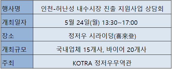- 인천시 중견기업, 사전 매칭을 통해 허난성 기업과 일대일 성공 상담-