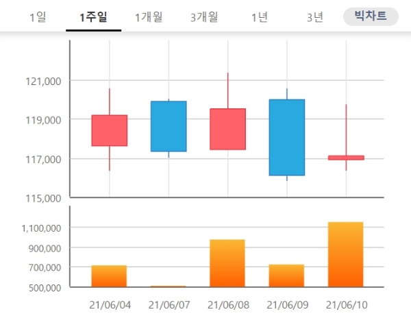 셀트리온헬스케어 주가는 종가기준으로 3일 11만7600원에서 10일 11만7100원으로 거의 변동이 없다.
