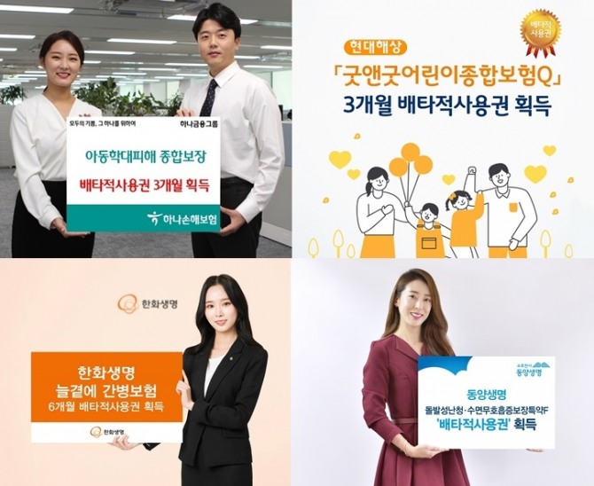 이미지 확대보기배타적사용권은 생명보험협회와 손해보험협회의 신상품 심의위원회가 보험소비자를 위한 창의적인 보험상품을 개발한 회사에 일정 기간(3개월~12개월) 독점 판매할 수 있는 권한을 부여하는 제도로 2001년 12월 보험사 간 ‘상품 베끼기’ 관행을 방지하기 위해 도입됐다.
