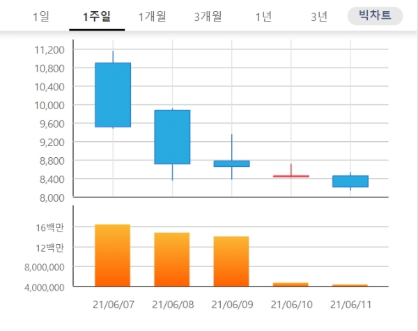 삼성제약 주가는 종가기준으로 4일 1만450원에서 11일 8200원으로 43% 내렸다.