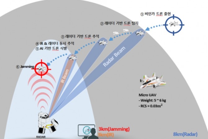 방사청은 "이는 세계 최고 수준"이라면서 "초소형 드론을 탐지하는 핵심장비인 능동위상배열(AESA)레이더는 대구경북과학기술원(DGIST) 소속 창업기업이 개발했다"고 설명했다.
