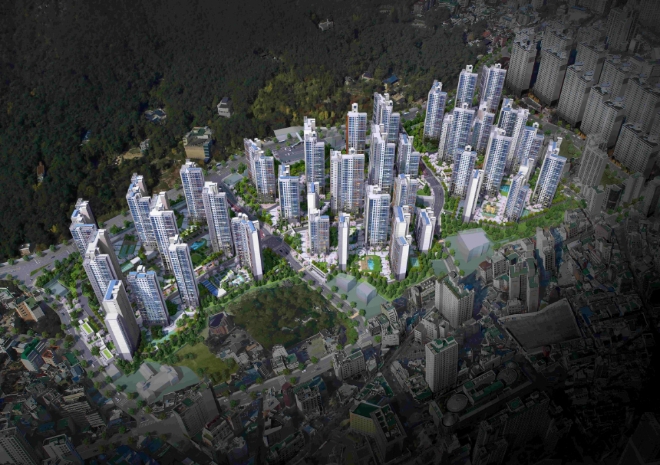 부산 동래구 온천4구역 재개발사업 ‘래미안 포레스티지’ 조감도. 사진=삼성물산이미지 확대보기