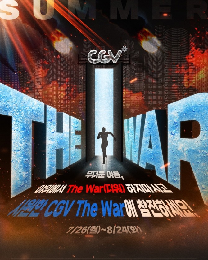 이미지 확대보기28일 업계에 따르면 CJ CGV(이하 CGV)는 오는 8월 24일까지 ‘CGV 더 워(The War)’ 대전을 펼친다. 날씨 “더워”와 전쟁 “The War”를 언어유희로 접근해 무더위와의 전쟁을 재미있게 표현했다.
