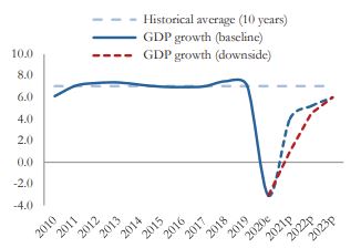 코로나19로 글로벌 수요가 감소하면서 캄보디아 2020년 경제성장률은 -3.1%(세계은행)이였다. 2021년은 캄보디아 정부의 빠른 백신접종과 확장정 재정·통화정책, 글로벌 수요 회복, 외국인 직접투자 회복과 함께 4.0%의 경제성장률이 예상된다. 하지만 불확실성이 확대될 경우 1.0%가 예상된다.