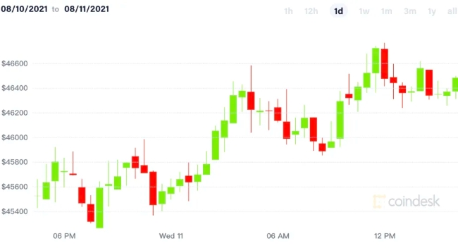 현재 암호화폐 시장에서는 비트코인(BTC)이 2.1% 오른 4만6,566달러, 이더리움(ETH)은 3.2% 상승한 3255.7달러에 거래되고 있다. 전통 시장에서는 S&P500이 0.25% 오른 4447.7, 금값은 1.35% 상승한 온스당 1752.4달러에 거래되고 있다. 10년물 미국 국채 수익률은 화요일의 1.347%에서 1.332%로 마감되었다.