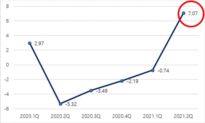 2021년 2분기 주요산업 성장 추이