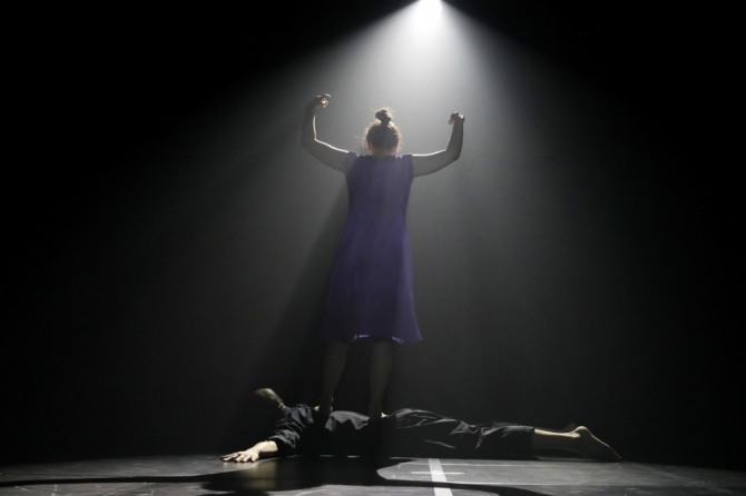 이미지 확대보기주제를 강화하는 손병하의 선곡 ‘꿈을 꾸세요’(Dream a Dream, Doris Day), ‘걱정하지 말아요’( You Will Be Safe, Rachel’s), ‘문자의 집’(Letter’s Home, Rachel’s), ‘관계를 노래하면서’(Singing Bridge, Rachel’s)는 의미적 축적을 쌓아 간다. 윤정아의 보라색 원피스와 김석중의 가벼운 꼬리가 달린 검정 원피스의 의미를 헤아리다 보면 작품은 중반을 넘어간다.