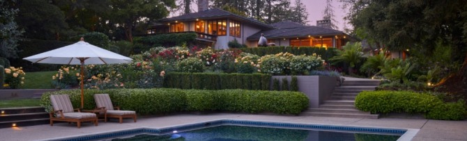 보다폰 그룹 전 CEO 아룬 사린 소유 캘리포니아 저택 뒷마당과 수영장이 보인다.