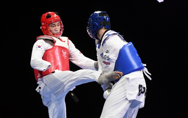 이미지 확대보기화제의 주인공은 태권도 종목에서 한국팀에 유일하게 메달을 안겨준 주정훈 선수이다.