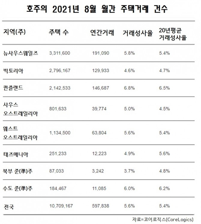 26일 호주 부동산포털 사이트 ‘어번 디벨로퍼(Urban Developer)’에 따르면, 호주의 지난 8월 주택 거래량은 59만 8000건으로 지난해 8월과 비교해 42%나 크게 늘어났다. 지난 2004년 이후 가장 높은 연간 판매 상승폭이었다.