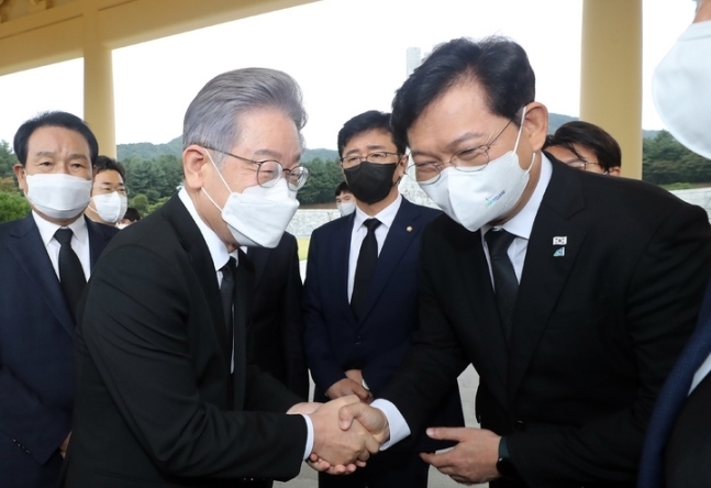 송 대표는 이날 이재명 후보와 대전현충원을 방문한 자리에서 이같이 밝히고 "대한민국이 헌법에 따라 운영되는 것처럼 대한민국 집권여당 민주당은 당헌당규에 따라 운영된다"고 말했다.