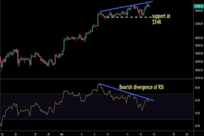 RSI의 약세 다이버전스를 뒤집고 6만4,801달러 이상의 새로운 사상 최고치를 열려면 5만8,500달러 근처의 일일 최고점을 넘어야 할 것으로 보인다.