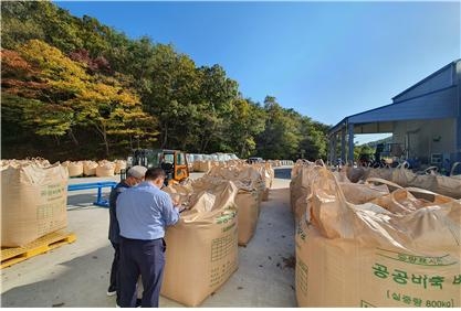 매입 물량은 5803t으로 포대벼 4170t, 산물벼 1633t이다. 지난해 보다 388t 늘어난 물량이다.