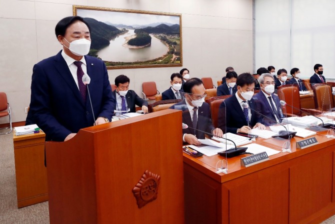 임준택 수협 회장은 "저도 자회사 보고를 받고 황당하게 생각했고, 의원님 지적하신 대로 잘못됐다고 인식하고 있다"며 "오늘 국감이 끝나고 나서 다시 수협개발 대표를 불러서 자체 조사를 하겠다"고 대답했다.