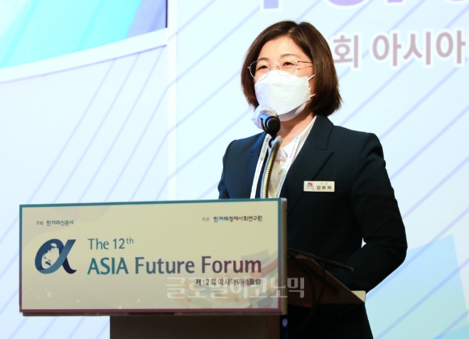 이미지 확대보기김보라 경기도 안성시장은 21일 대한상공회의소 국제회의장에서 열린 2021년 아시아미래포럼에서 ‘시민과 함께하는 사회적경제’를 주제로 정책사례를 발표했다.