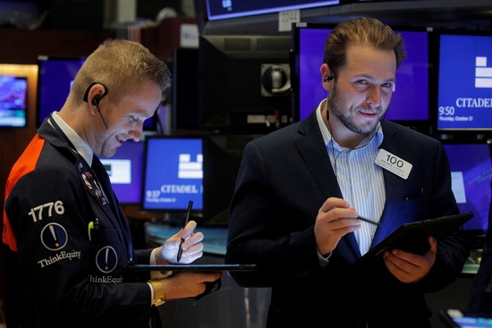 뉴욕증권거래소 트레이더들이 밝은 표정을 짓고 있다. 사진=로이터