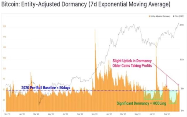 블록체인 데이터에 따르면 장기 비트코인 보유자들은 일부 이익을 취하기 시작했으며 이는 일반적으로 비트코인이 사상 최고치에 도달할 때 발생한다. 글래스노드(Glassnode)의 블로그 게시물에 따르면 현재 가격 주기를 기준으로 볼 때 장기 보유자의 차익은 강세장 단계의 끝에서 볼 수 있는 극단적 수준보다는 완만한 것으로 보인다.