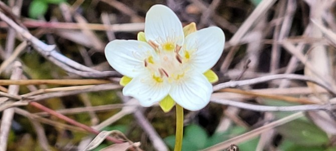 야생화 도감엔 7월에서 9월까지가 개화 시기로 적혀 있어 물매화를 만나기엔 조금 철이 지났지만 혹시나 하는 마음으로 부지런히 발걸음을 옮겼다. 산책로를 따라 걸으며 유심히 주변을 살피는데 좀처럼 물매화는 보이지 않았다. 이미 잎이 지고 붉은 열매만 주렁주렁 매단 백당나무와 곱게 물든 작은 잎 사이로 선홍색의 열매를 내보이는 화살나무, 개옻나무 단풍이 눈길을 잡아끈다. 그리고 봄꽃의 대명사 중 하나인 개나리꽃을 보았다. 철모르는 꽃이라고 농담을 주고받으면서도 신기한 듯 개나리꽃을 카메라에 담았다. 그리고 어디쯤에선가 누군가 물매화를 찾았다. 절정을 지나 끝물이었지만 그래도 몇 송이의 물매화는 기다리기라도 한 듯 다소곳이 우리를 맞아주었다. 먼 여행길에서 만난 가을의 진객을 향해 부지런히 카메라의 셔터를 눌러 대며 우리는 탄성을 연발했다.