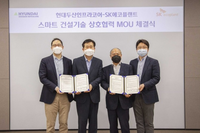 현대두산인프라코어와 SK에코플랜트는 이번 MOU 체결로 건설 생산성, 안전과 품질 혁신을 위한 스마트 건설기술 고도화와 현장 실증을 펼친다.