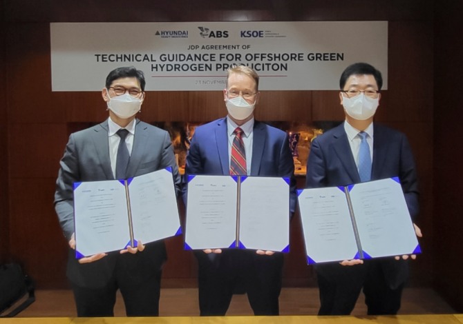 해상 그린수소플랜트를 설계하려면 플랜트 수전해(물 전기분해) 공정 흐름, 안전 규정 등에 대한 가이드라인이 필요하다. 이에 따라 현대중공업은 미국선급과 협약을 맺어 업계 최초로 관련 가이드라인을 만들기 위한 첫 발을 뗐다.