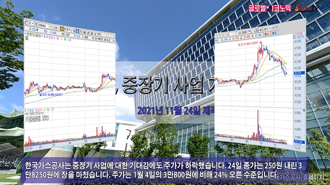 한국가스공사는 중장기 사업에 대한 기대감에도 주가가 하락했습니다. 24일 종가는 250원 내린 3만8250원에 장을 마쳤습니다. 주가는 1월 4일의 3만800원에 비해 24% 오른 수준입니다.
