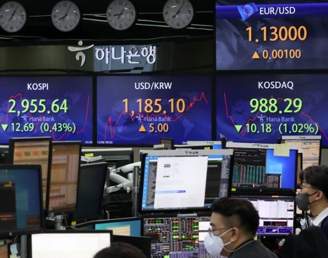 6일 오전 서울 중구 하나은행 딜링룸에 지수가 표시되고 있다. [사진=뉴시스]