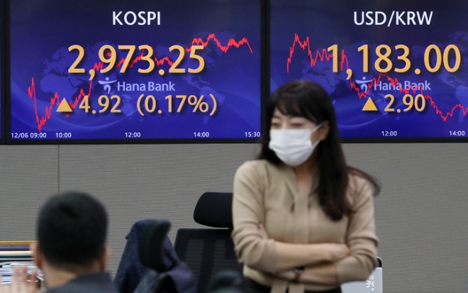 지난 6일 오후 서울 중구 하나은행 딜링룸 전광판에 지수가 표시돼 있다. [사진=뉴시스]