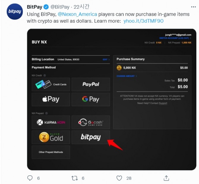이미지 확대보기PYMNTS는 15일(현지 시간) 넥슨 자회사인 인터랙션 게임 소프트웨어 회사 넥슨 아메리카가 비트코인 결제 서비스 제공업체인 비트페이(BitPay)와 손잡고 암호화폐와 달러로 게임 내 아이템을 구매할 수 있게 했다고 보도했다.