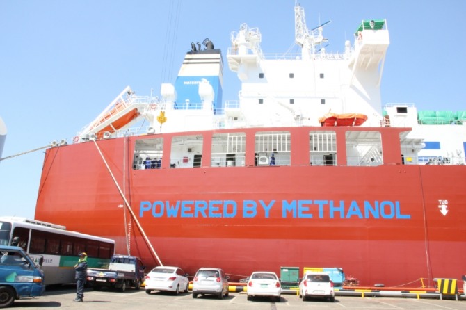 현대미포조선은 지난 2016년 세계 최초로 메탄올을 연료로 사용하는 메탄올 추진 선박을 건조했다. 사진=뉴시스