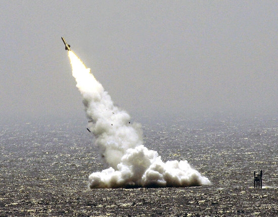 중국 잠수함에서 수중 발사 미사일(SLBM)이 발사되는 모습, 한국군도 갖고 있는 중요한 잠수함 무기중 하나이다 사진=로이터