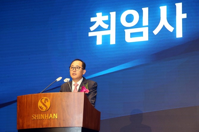 그는 지난해 12월 20일 신한금융 자경위로부터 진옥동 전 행장의 후임으로 추천됐고 30일 공식 취임했다. 진 전 행장이 그룹 회장으로 내정됨에 따라 사실상 그룹 내 2인자로 꼽히는 은행장 자리를 한 행장이 물려받은 셈이다.