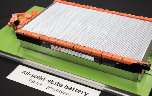 토요타는 전고체배터리의 연구개발에 앞서 1000개 이상의 관련특허를 보유하고 있다. 2020년 여름에는 전세계에서 처음으로 전고체배터리를 탑재한 차량에서 차량번호를 취득해 시험주행했다. 2020년대 전반 하이브리드차량(HV)에의 탑재를 목표로 하고 있다. 툐요타는 개발을 더욱 진행해 앞으로는 10분이하의 충전으로 주행거래를 약 1500Km까지 늘리는 것도 시야에 넣고 있다.
